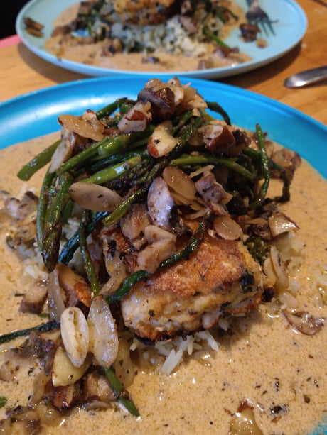 Almond Crusted Mahi Almond Crusted Mahi : Dredge each piece in the flour, then the egg, and then the almond mixture, pressing the nuts onto the fish so they.
