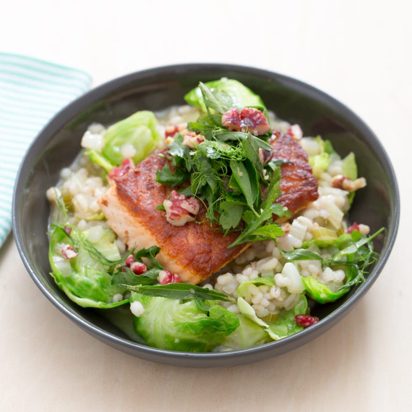 Salmon Pearl Barley Risotto - *flora proactiv contains plant sterols.